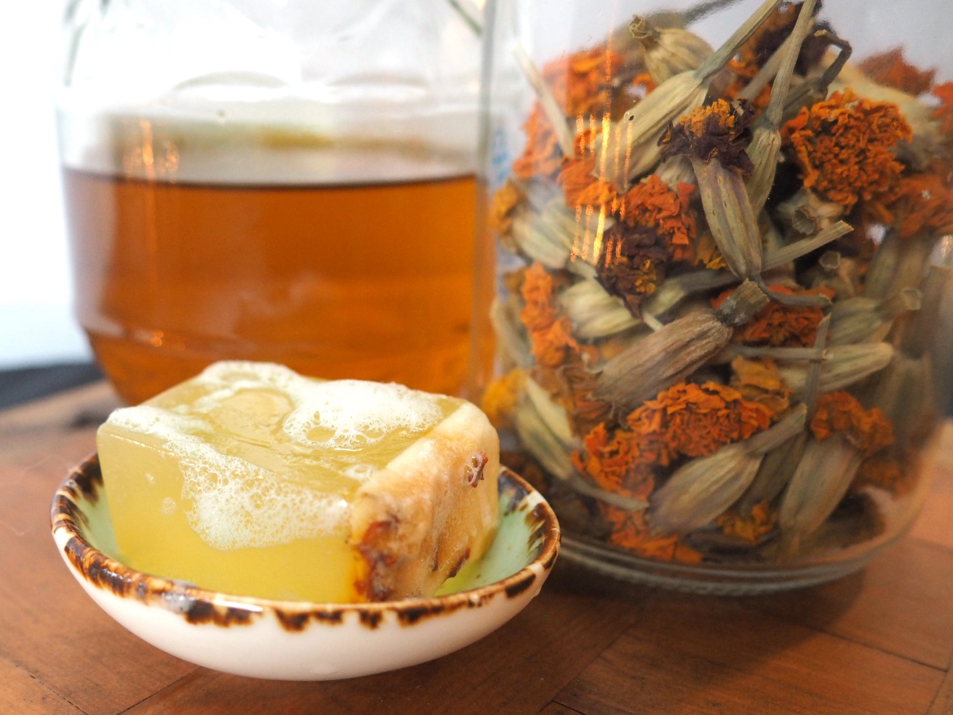Ingredients: Olive Oil, Coconut Oil, Sweet Almond Oil, Purified Water, Glycerine, Grapeseed Oil (Vitis vinifera), Kawakawa (Piper excelsum) essential oil, Rosemary (Salvia rosmarinus) essential oil, Chamomile (Chamaemelum nobile), essential oil, Marigold (Tagetes sp and Calendula sp) essential oil, Sorbitol, Sodium Hydroxide, Titanium Dioxide (In white soap).